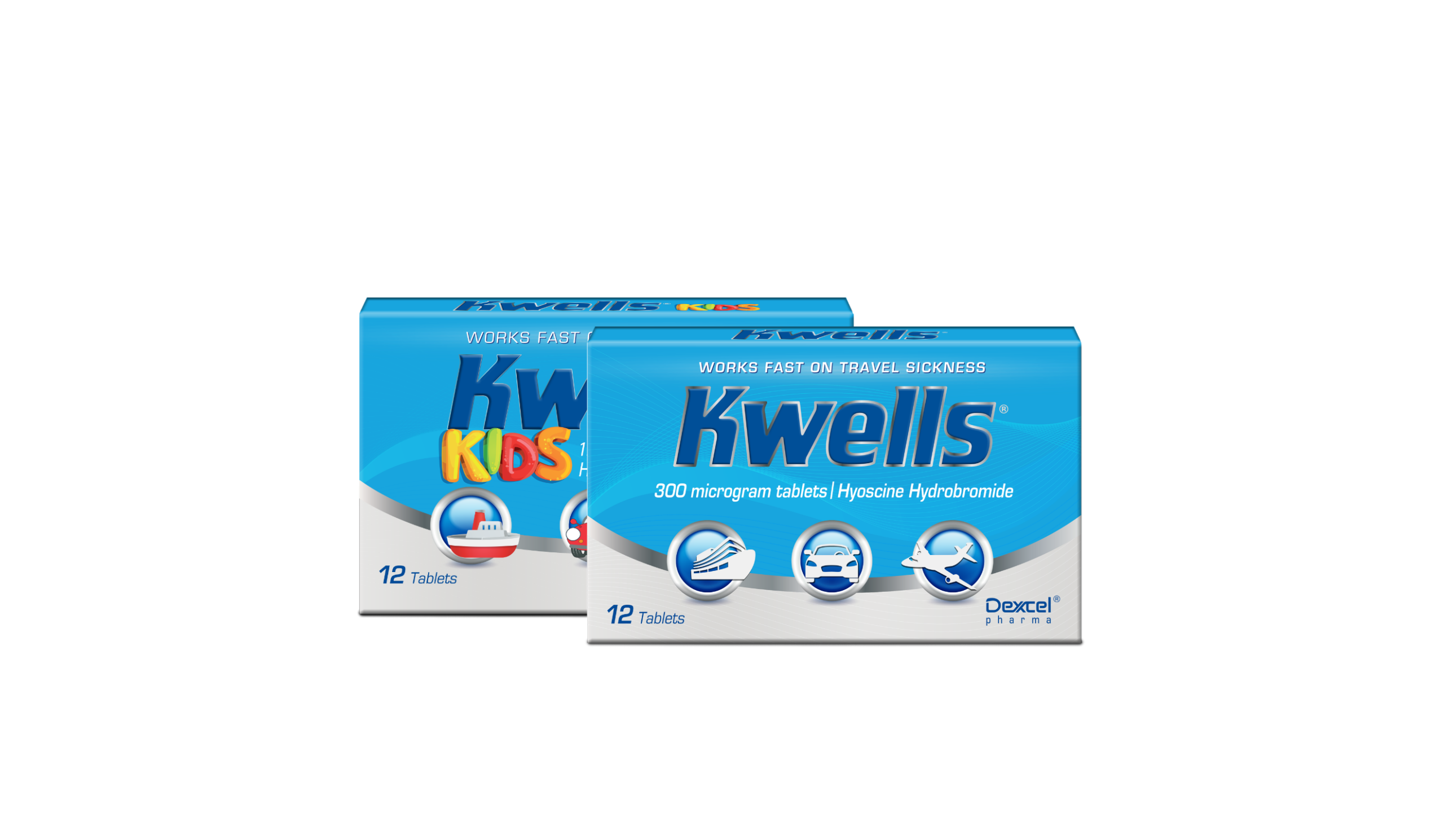 Kwells 300 microgram tablets and Kwells Kids 150 microgram tablets are designed to prevent travel sickness symptoms.